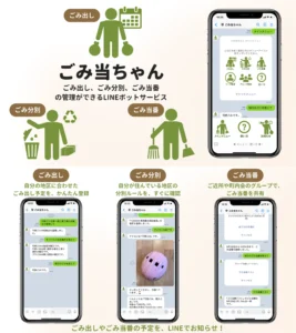 ごみ当ちゃん(ごみとうちゃん) 企業名 白井 亨 (個人) サービス名称 ごみ当ちゃん(ごみとうちゃん) サービス概要 ごみ出し、ごみ分別、ごみ当番を管理できるLINEボットサービスです。LINEの「友だち」追加で利用可...